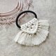 花边结编织发圈采用黑色弹性伸缩发圈加上白色棉绳,礼物家设计师 gifthome手工编织制作。