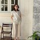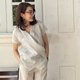 米色短袖亚麻衬衫,香蕉领:Rosie 衬衫