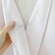 此款衬衫为前开襟斜襟设计,一侧襟片会固定在另一侧的钮扣上。