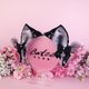 - White Cheshire Cat Ears and Tail set Features: - 2,25 inches tall kitten ears shape - luxury faux fur - crystallized with Preciosa - metal hoops - removable lacy bows with bells - fully wired and posable on the metal headband