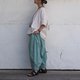 isica 的腰间蝴蝶结绑带茧形气球裤。使用硬挺帆布制作,适合天天穿搭。