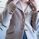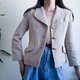 复古米色西装外套,有口袋,长袖,金色纽扣