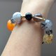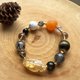 ♡ 材质:茶晶、黑发晶、加上橘色(戈壁玛瑙/黄水晶)、及其它黑灰白色系晶石、黄铜、日本蚕丝弹性线