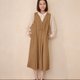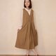 - ・咖啡条纹 ・V领背心洋装 ・立体车缝线 ・腰线细褶设计 ・后身片尖褶设计 ・裙摆箱褶设计 模特儿身型参考 藤原希 身高163cm/体重48kg