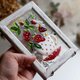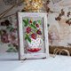杯中的草莓 - 框架中的彩色玻璃。 早上心情不错的全景。