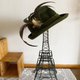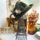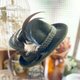 帽子是墨绿色厚绒布材质装饰充满光泽的羽毛