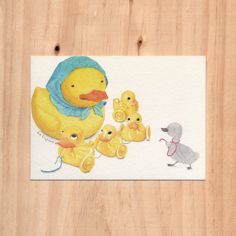 <香港玩具 X 童话 - 黄胶鸭 x 丑小鸭>水彩插画明信片