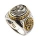 这款日本凤凰戒指展现了传奇的凤凰和冠凑龙图案,采用100%纯银制作并搭配金色细节,呈现出强烈的双色对比。戒面尺寸为15mm×23mm,重量约16g。每一枚戒指均由工匠手工制作,带有.925印记,适合喜爱独特哥特饰品的男性。
