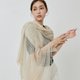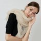 花摆围巾也可以称为空气系列,每条经纬线交织都更具透气性,让身体的温度更大幅度的保留在围巾的独特隔层,另一特色,相较梭织系列弹性较大,羊绒用量也相较多。也选用羊绒的原色系,不经染色而呈现最原始的颜色。