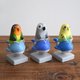 ・左起三只鸟:长尾小鹦鹉、灰鹦鹉、虎皮鹦鹉。请从选项中选择。