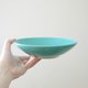 Turkish blue matte glaze that develops a vivid greenish blue green reminiscent of the tropical sea.