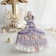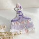From the slit in the skirt, a baby rabbit wearing a pink costume is peeking out as if waiting for her turn.