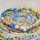 ▲以永续环保的概念为主,使用回收的糖果纸及饼干袋,经由手的温度,编织美丽的色彩风景,独特的自然触感