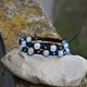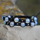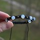 蛋白石、棉蜡线、金属色亚克力珠、金属珠。 手链宽度约。 10 мм(3/8 英寸)。手链的长度可调。手链的设计适合手腕周长为 6 - 7 英寸(15.5-18 厘米)。如果您的尺码不同,请告诉我。我会 制作适合您尺寸的手链没问题。