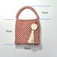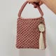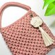 特殊纹路的棉绳编织手提包, 搭配小挂饰简单而优雅 成品颜色及尺寸如图片标示(玫瑰褐色) 成品含图片中的米白色挂饰 如要订制其他颜色请使用聊聊询问 如想自己动手作, 卖场有DIY材料包贩售