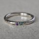 这次以银槌纹戒指为基底,组合了紫水晶与祖母绿进行制作。神秘的双色组合,似能让人心情平静。
