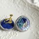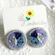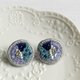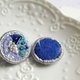 Qy.embroidery 圆形海蓝色系珠片手工刺绣耳钉耳夹