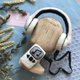 新生儿耳机和播放器。 毛毡耳机。 新生儿道具。