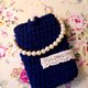 深蓝色。小奢华珍珠绒手挽包