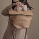 - 木把简约复古梯型设计真皮包 卡其 尺寸:(长)15 包开口28 包体宽30 (底厚)8cm 可放进折叠雨伞,矿泉水瓶,简单,实用
