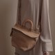 木把简约复古梯型设计真皮包 卡其