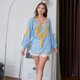 纯棉长袖上衣 手绣花卉图案