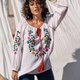 手工制作 花卉刺绣 棉质上衣 夏季罩衫 长袖棉质