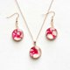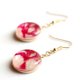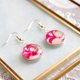 这款耳环采用带有珍珠光泽的树脂,并以粉色描绘出图案。