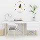 - 挂钟使用包装内的图案纸和双面胶即可轻松安装,无需在墙壁上钻孔。可贴在光滑表面、玻璃、钢材、瓷砖、大理石、壁纸上。