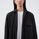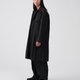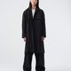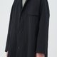- 布料具有特殊质感纹理,运用于大衣版型,透过宽、大轮廓,与西装领的结合,完整呈现布料特殊质感之气势。