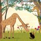 黑猫被一群奇怪的小鸟带进森林后,最先遇见的是一头长颈鹿。