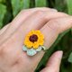 可調式戒指 SUNFLOWER & Leaf Crochet Ring - 戒指 - 贵金属 黄色