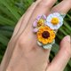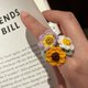 可調式戒指 SUNFLOWER & Leaf Crochet Ring