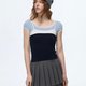深淺藍撞色 mu1系運動風花邊拼接天絲短袖針織上衣
