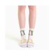 陈幸婉(1951 - 2004)早年随李仲生学画,后多次至法国、日本、瑞士旅居创作,曾获1984年北美馆第一届“中国现代绘画新展望”奖项。早期她创作大幅抽象画,后亦采半自动性技法,而后又尝试将石膏、纱网、棉布等材质纳入绘画结构,交互堆叠,强化平面画作的物质性。《作品8220》即采用石膏与压克力颜料,在画布上拖曳出黏糊状的有机形体。深绿、亮绿连缀而成数个不规则框形,彼此之间留有宽窄不一的间隙,鹅黄、粉橘、粉蓝等颜色则或以点状、或以块状地跃动于其中。为呼应作品既通透明亮又具材质触感的视觉性,袜子局部采用透明底纱,设计师并以特殊的“袜品反穿”思维从反面作设计,彰显原于里侧的纱线或抽须、或毛茸茸的活泼样态,巧妙呈现陈幸婉作品中借由石膏与颜料相遇后造成的趣味与张力。