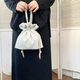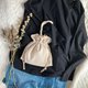 - I made a drawstring mini bag using Crepe Amundsen material. In order to take advantage of the plump texture, the design is generously tucked. The handle is relatively thin and gives a clean impression. I aimed for a size that is neither too big nor too small.