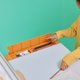 升高:一手拉前方小桌板中间处、另一手扶着大桌板中间处向上拉。