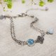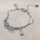施华洛世奇水晶、天然海蓝宝。海蓝宝宁静而沉着,施华洛耀眼而夺目。是不是蓝天总会微笑看着海的光芒闪耀?全不锈钢链可以放心戴着洗澡、泡温泉、浸海水,适合一直不想取下手链的妳和她。