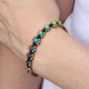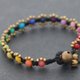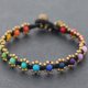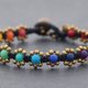 这是用黑色打蜡线与多色石头和黄铜珠编织在一起手编织手镯。关闭使用铜钟