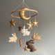 Lovely modern bunny mobile with gold stars and moon. Baby gold mobile is a unique baby gift for a newborn and great baby shower gift by SweetMobiles too. Create golden decoration for gender neutral nursery.