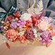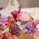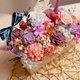 “粉紫派对”不仅运用不凋玫瑰、太阳玫瑰与通草康乃馨等多主花形式,