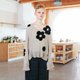 - 安哥拉山羊毛衣,黑色缝花,微低领。宽松版设计,适中厚度,柔软舒适。两种尺寸可挑选。