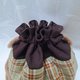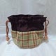 六片布拼接的圆底束口袋,表布用格纹与素色搭配,加上棉衬,触感柔软,超级可爱~