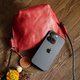 这是一款以结实的**牛皮**和高级五金制成的简约斜挎包。