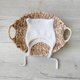 这款可爱的婴儿帽兜采用柔软、温暖且蓬松的安哥拉兔毛制成。
