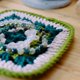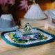 约11 x 11cm 绿色垫子 有两只配色 深绿 和 青绿 请于备注 注明要什么颜色 或者两只色要会更好配衬😄 可摆方水晶 植物 饰物 上面 亦可做杯垫 可以清洗 配温和清洁剂用手清洗 勿入机洗 人手制作 有少许瑕疵 完美主义谨拍
