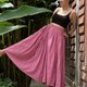 裙裤设计,后腰松紧,裙身采全褶设计,采用棉麻材质,布料打褶并全身手工刺绣。