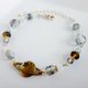 这是一款时尚手链,中心有可爱的土星吊饰,对称组合灰和蓝火抛光捷克珠和玻璃珠。