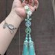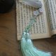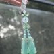 【流苏材质】:穗子为月光薄荷色,配以白玛瑙桶珠,穗子的线材为锦纶。流蘇是非常柔和的淡綠色系,微微帶點藍綠色。