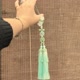 这是我们纯手工制作的古典流苏穗子,配以细致编制的绳结和玉石平安扣,以及白水晶随形珠。